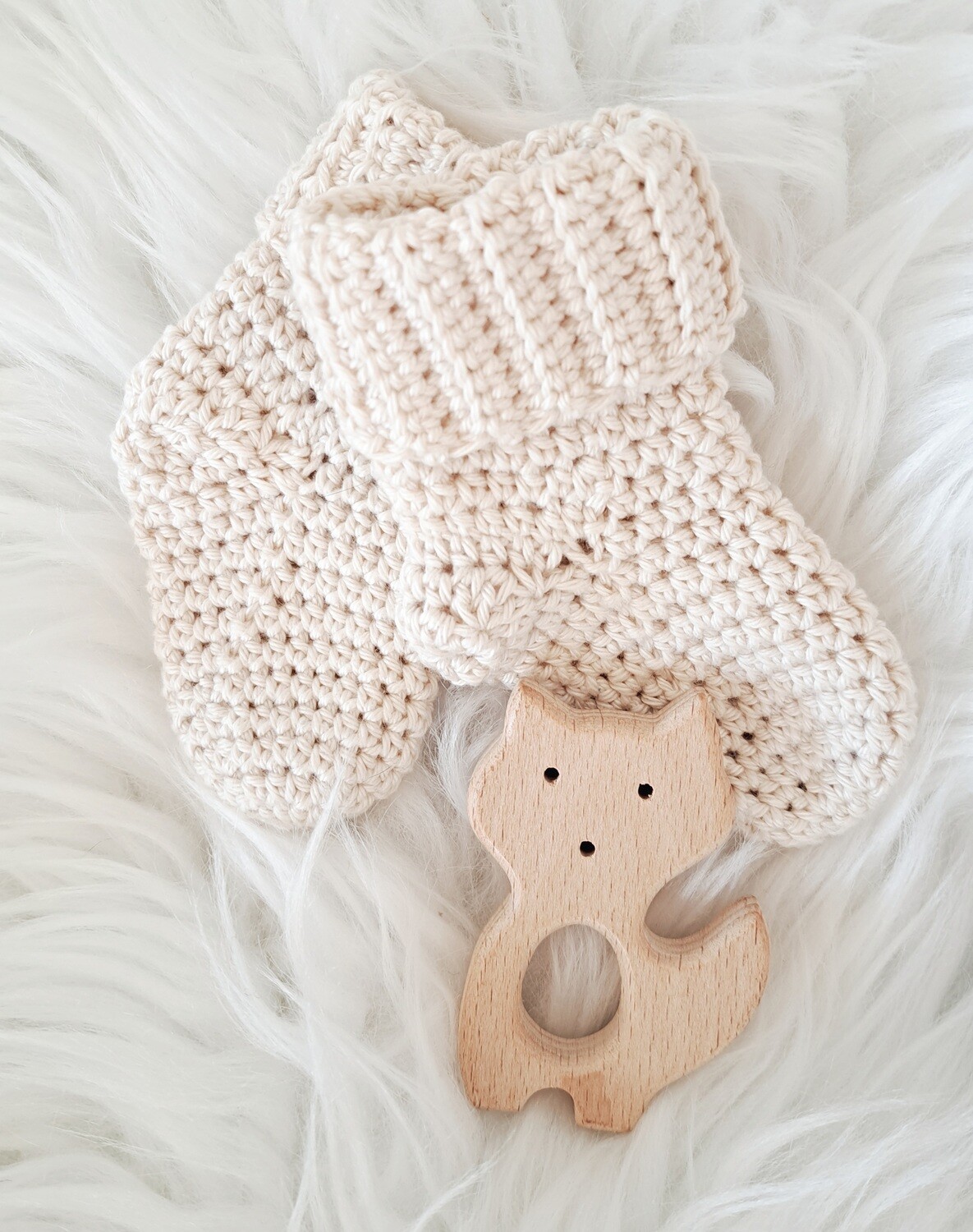 Chaussons-chaussettes pour bébé 0-3 mois ils dont crochetés en fil coton de couleur crème, entièrement faits à la main.